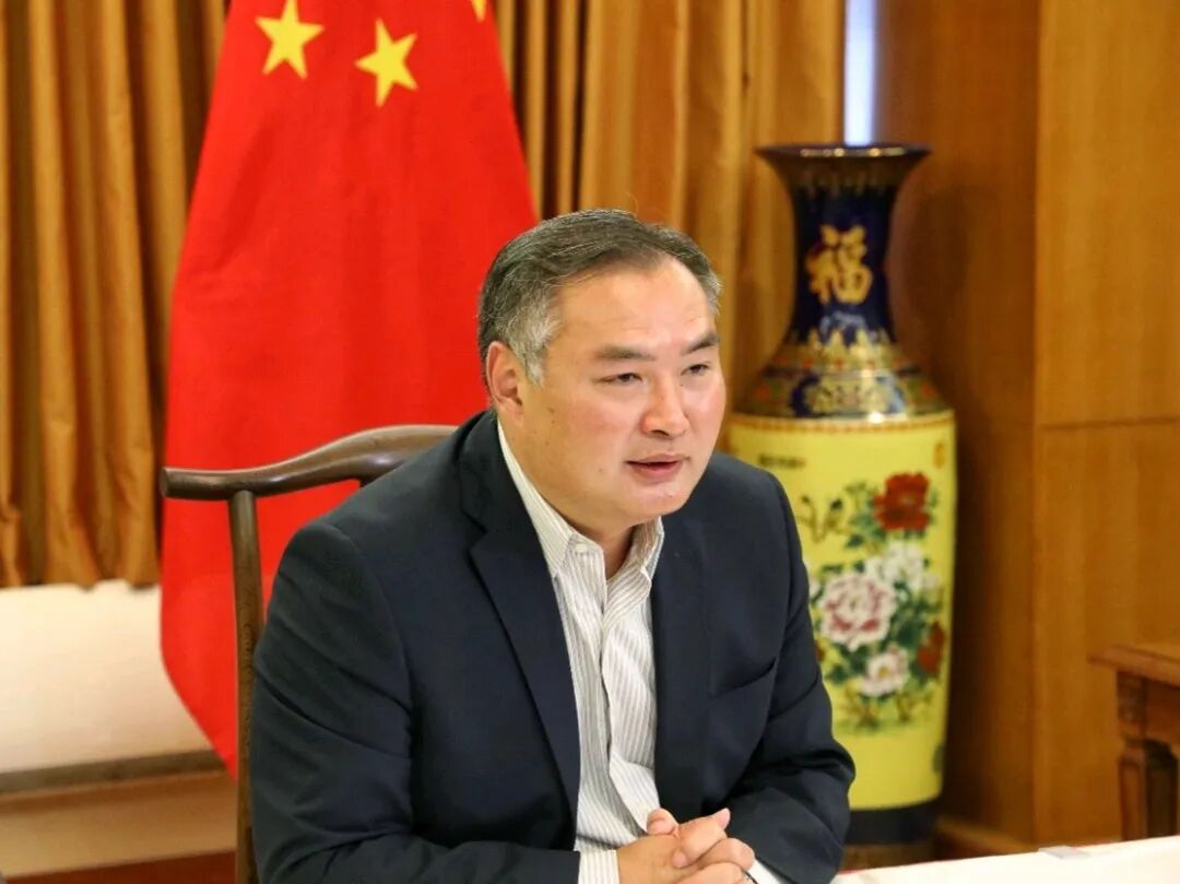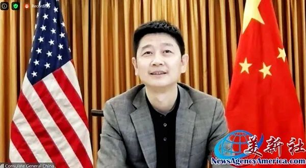 6月5日,中国驻洛杉矶总领事馆召开侨社视频会议。张平总领事发表讲话。50位华侨华人代表参加视频会议。代双明副总领事、汤长安、周咏梅、何明、石俊豪、王阶宜等领事参加会议。领侨组汤长安主任主持会议。飞洋物流集团CEO邓澍妤(Renee Deng)参会并作为侨界代表首先发言。