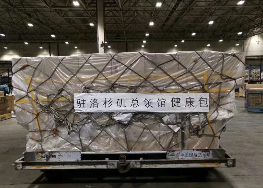 3月,美国疫情迅速蔓延,飞洋物流马上又投入了“抗疫下半场”,协助从中国到美国的抗疫物资运送,向美国消防队捐助口罩、防护服等物资,并协助总领馆将防疫物资送到在美中国留学生、侨胞和社团手上。到目前为止,飞洋一共协助领馆运送13,000份“健康包”以及口罩、手套、额温枪等防疫物资60余万件。每一份物资都凝聚着祖国对海外同胞的深切关怀。