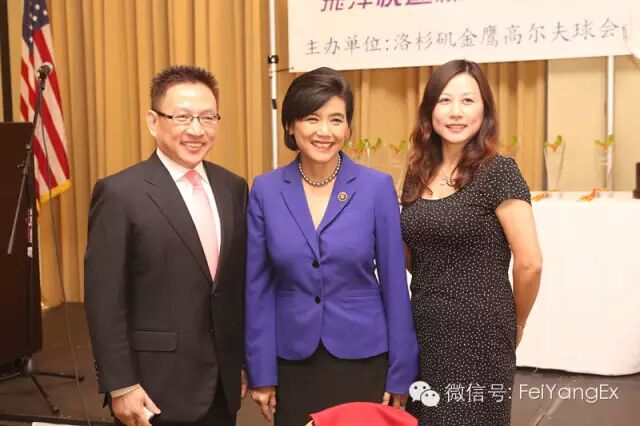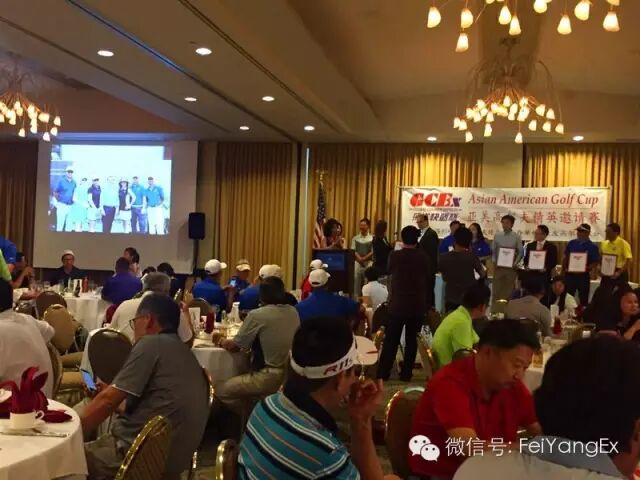 飞洋国际物流集团董事长兼飞洋快递总裁邓澍宏,国会众议院议员赵美心,市政参议院领袖加州参议院共和党领袖夏乐柏, 共和党南加林肯俱乐部主席,太平洋棕榈酒店副总裁何美湄,主办单位美国金鹰高尔夫球会会长师敬,承办单位全球华人高尔夫球联谊会会长江启光,协办单位台友高尔夫球会会长范人文等来宾为获奖球队及个人颁奖。